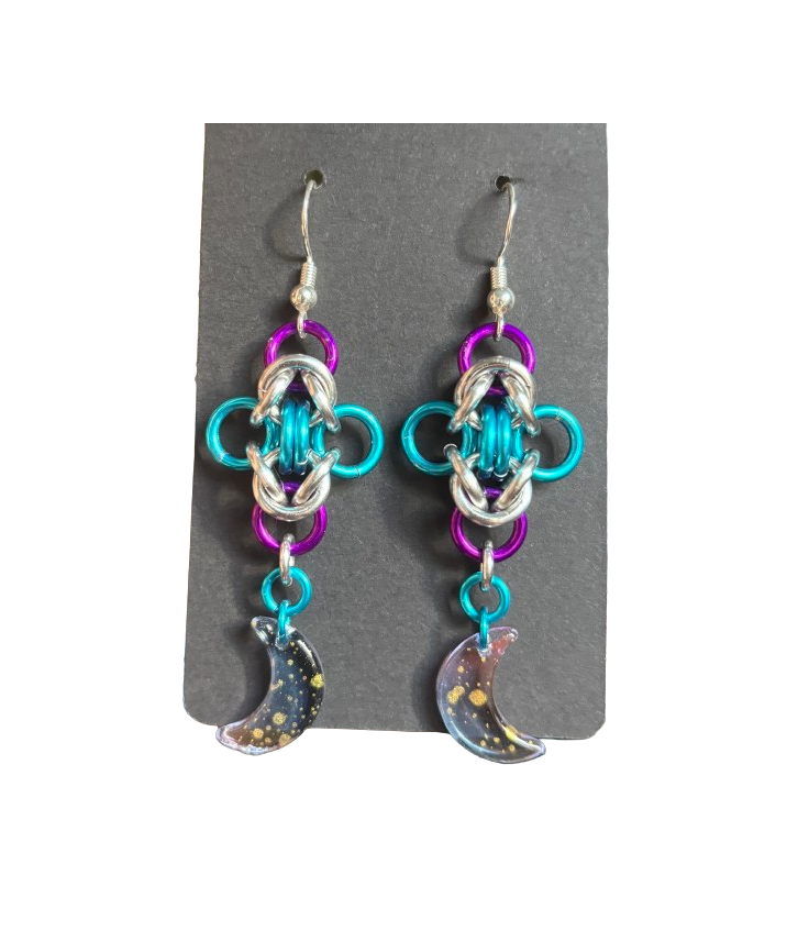 Example: Nova top made with premium scales. Scale design is a gradient starting at the top with kelly green, going to turquoise, and ending in blue at the bottom. Helm weave made with silver and turquoise rings. Bust measurement: 32".